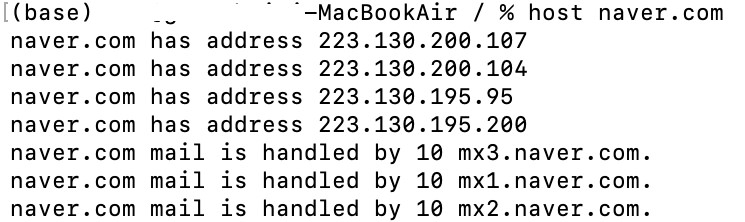 nslookup naver.com