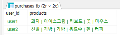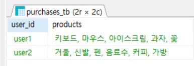 다음표와 같이 회원정보별 구입한 물품이 있다고 가정해 보자.